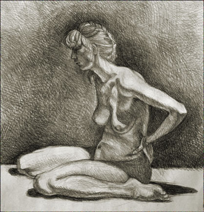 Life drawing done in charcoal on paper