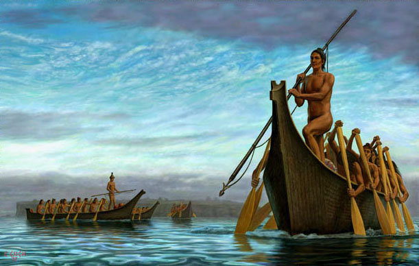The waters off Cape Flattery and Tatoosh Island have always been frequented by Makahs on seasonal fishing and hunting trips. Makahs have long been known as whale hunters, seal hunters and fishermen. From this vantage point Makah ancestors sighted early European expeditions searching for the Northwest Passage and the entrance to the Straight of Juan de Fuca. |